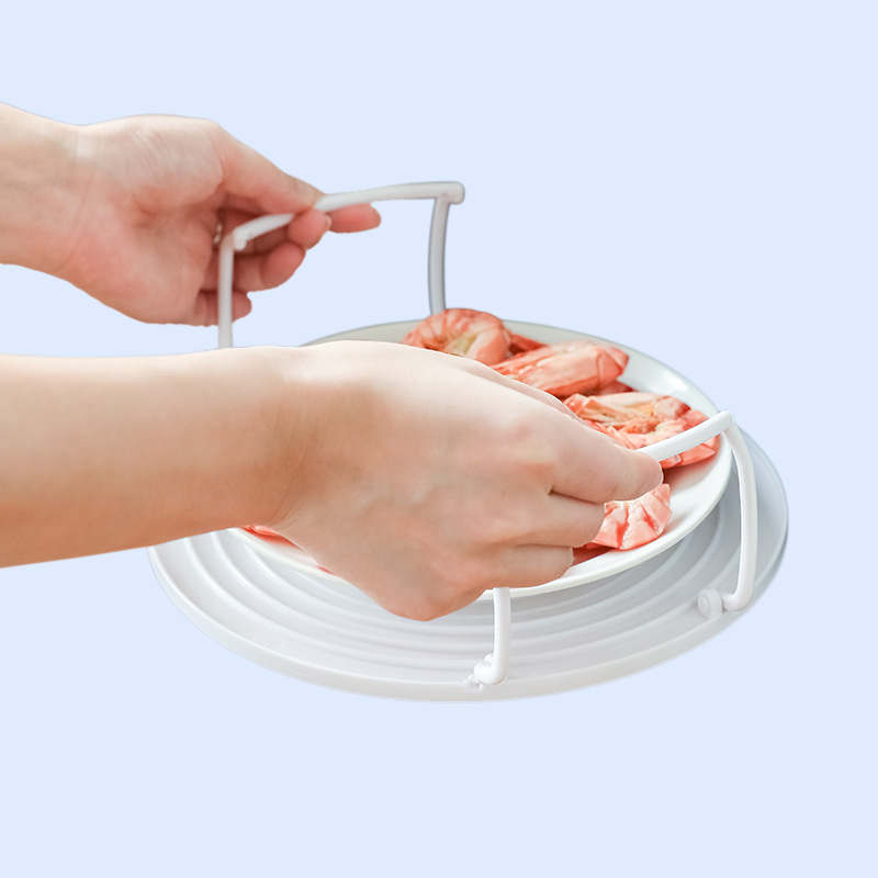省スペース設計の折りたたみ式ラウンドディッシュラック。耐久性素材、簡単収納、水切り効率向上、キッチン整理に最適。